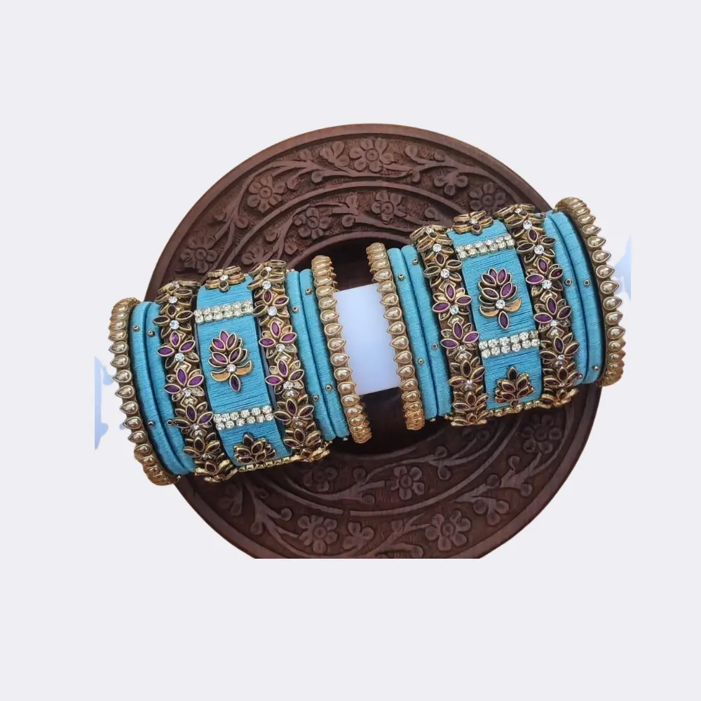 We take great pride in the durability of our silk thread bangles We use reinforced bases and premium silk that doesn’t fray easily, allowing the girl to keep the set as a cherished memento of her transition into womanhood. To maintain the intricate stone work and the brightness of the thread, we recommend storing these silk thread bangles in a plastic box or a velvet pouch. By choosing our handcrafted sets, you are choosing a piece of jewelry that honors tradition while embracing the vibrant energy of youth.